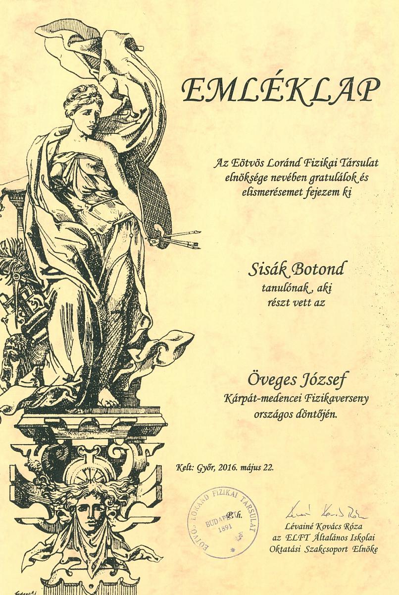 Szkalonai Fanni 5.C osztályos tanuló a 2016 május 28-án Szolnokon megrendezett Fit Kid országos bajnokságon első helyezést ért el, ezáltal kvalifikálta magát az októberi Fit Kid Európa Bajnokságra.