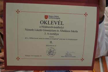 iskolánk 3.a osztálya II. helyezést ért el, ezzel 100 000 Ft jutalomban részesült.