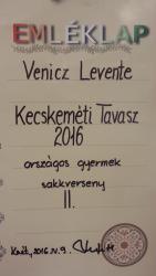 2016.04.09-én a KECSKEMÉTI TAVASZ országos gyermek sakkversenyen Venicz Levente 2.c osztályos tanuló 2. helyezést ért el.