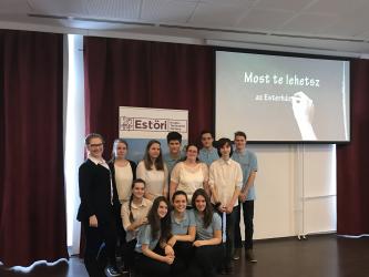 Az Esterházy Magánalapítvány által megrendezett Estöri kreatív történelem versenyen vettek részt iskolánk diákjai február 21-én, kedden a Magyar Tudományos Akadémia Könyvtárában. A verseny küldetésének tekinti, hogy a fiatalok körében népszerű digitális eszközökkel hozza közelebb a történelmet a diákokhoz. A verseny első fordulójában (internetes kérdőív és esszé az Esterházy család XVII. századi történetéből) 94 három tagú csapat versenyzett egymással. A középdöntőbe jutott harminc csapat közt volt iskolánk 9.a osztályának négy (!) csapata is. A második körben a csapatoknak egy kisfilmet és egy prezentációt kellett készítenie a fent megjelölt témában. A középdöntő eredményhirdetésére február 22-én délután került sor, ahol kiderült, hogy a Szűcs Tímea, Kovács Maja Kamilla és Sinka Borbála összeállításban versenyző csapat bejutott a döntőbe. Ők a 13 további versenyben maradt csapat közt utazhatnak a döntő színhelyére az ausztriai Kismartonba.