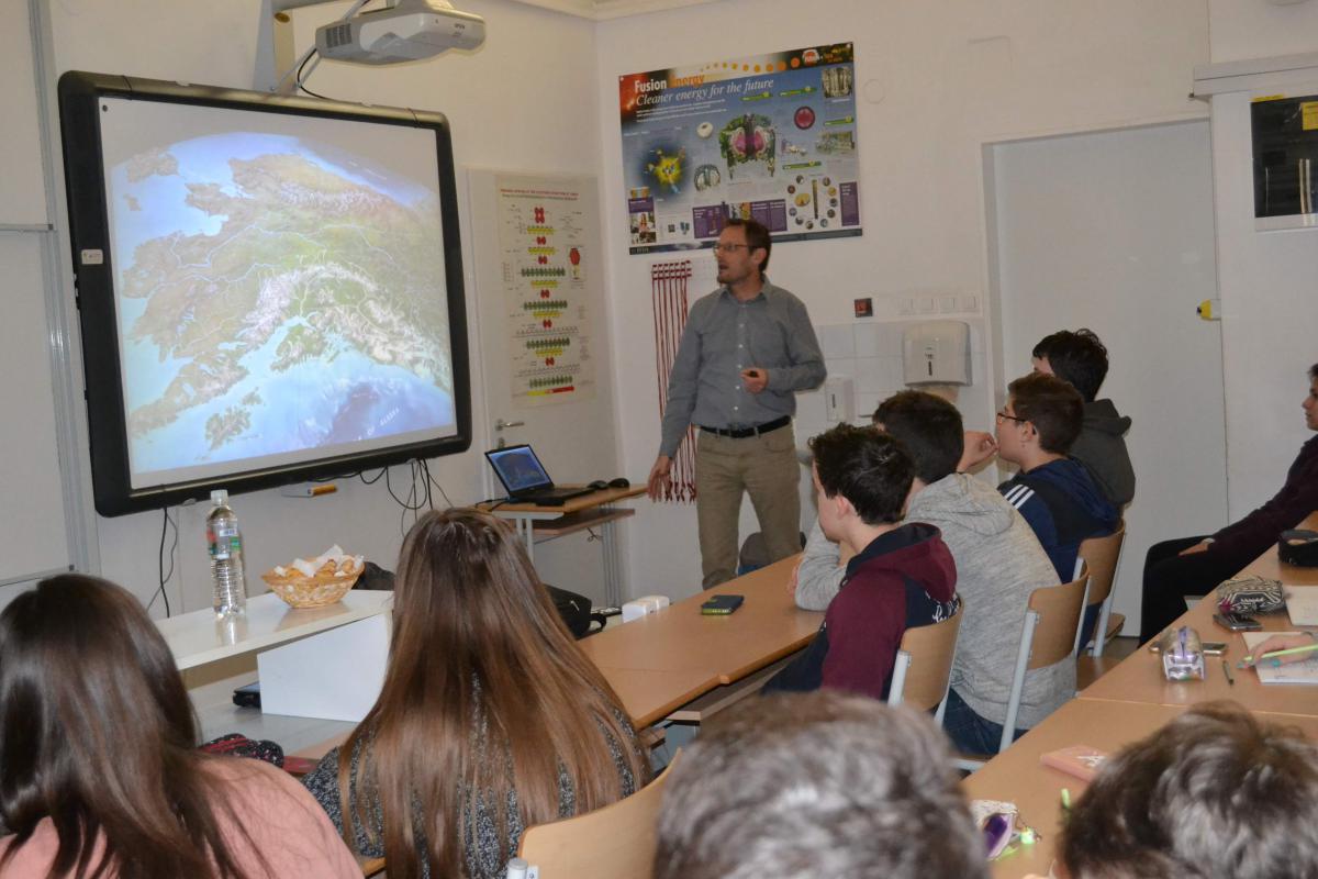 Rendhagyó földrajz óra keretében vezette be Karancsi Zoltán a Szegedi Tudományegyetem Földrajzi és Ökoturisztikai Tanszék docense, tanszékvezetője a 8. b és 7. a osztályos tanulókat Alaszka csodás világába. És hogy miért éppen Alaszka? Sok szempontból különleges vidék. A másfél millió km2 -es hatalmas területen csupán 700 ezren élnek, így az állam legnagyobb része ma is vadon, ahol háborítatlanul élhetnek a vadállatok, de ahová csak repülővel lehet eljutni. Itt van Észak-Amerika legmagasabb csúcsa, legnagyobb nemzeti parkja. Emellett itt vannak a legszebb, ugyanakkor a legnépszerűtlenebb nemzeti parkok is a világon. Itt - a hó és a jég birodalmában - terem a világ legnagyobb zöldsége. De az ország közepén, a legészakibb egyetemi városban, Fairbanks-ben egy szál pólóban is melegünk lehet. Szóval ez mind- mind Alaszka!