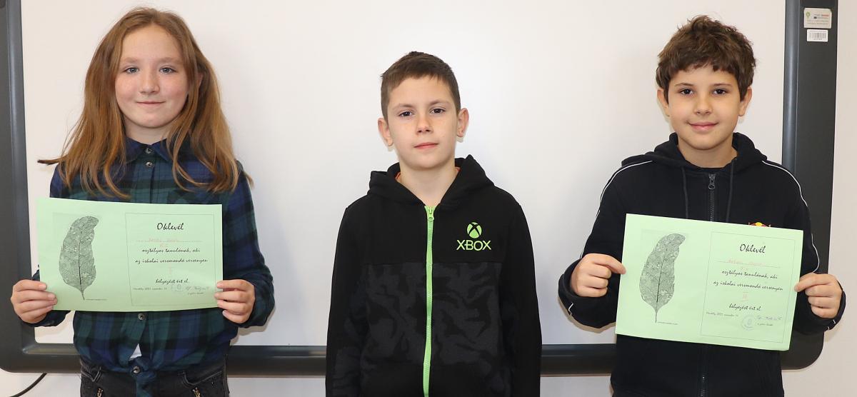III. hely: Grochulski Hanna 6.B osztályos és Katona Hunor 5.C osztályos tanuló.