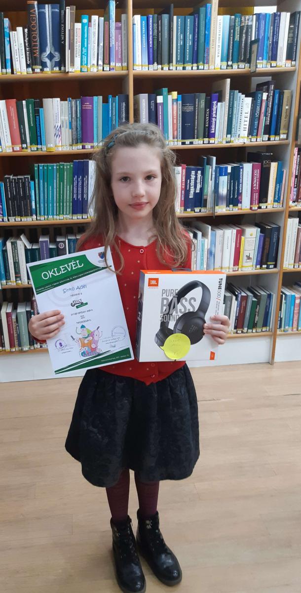 I. helyezett: Kovács Kála Dorina (NLG, 7.ny. Felk. tan.: Nagyné Gábor Petra)
