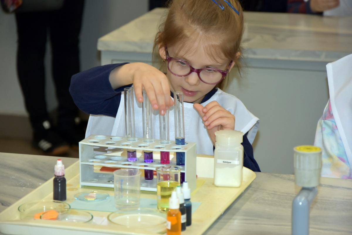 A laborban tréfás-mókás, varázslatos kísérleteket végeztek a „kis tudósok”.