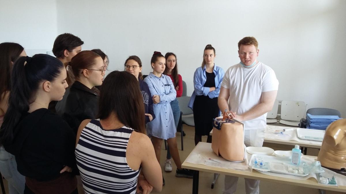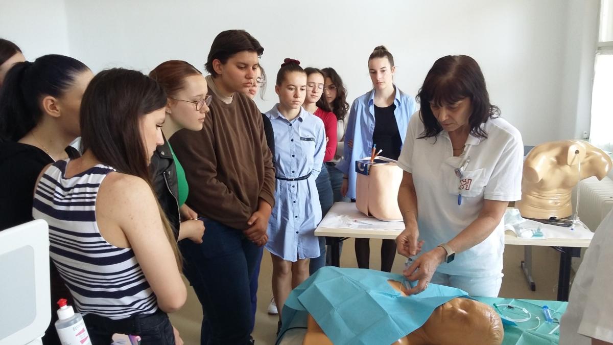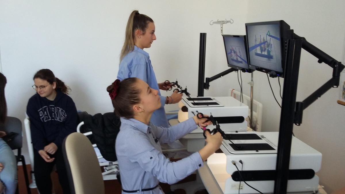2024.04.12-én NTA foglalkozás keretébe a vásárhelyi skill laborba látogatott iskolánk 11 diákja. Tóth Lotti (12b) beszámolója olvasható az eseményről az alábbiakban: Szerencsések voltunk, hogy be tudtunk tekinteni a Hódmezővásárhelyi kórház skill laboros oktatására. Először az ultrahang diagnosztikával ismerkedhettünk meg, nőgyógyászati babán gyakoroltunk, megtanulhattuk megállapítani a magzat nemét és, hogy nincs-e valamilyen fejlődésbeli elváltozása. A laborfoglalkozáson többek között VR-szemüveg segítségével három dimenzióban vizsgálhattuk az emberi. Ezután a gyakorlaton megismerkedhettünk a laparoszkópos műtéti eszközök használatával, sőt még ki is próbálhattuk őket. Ezen kívül aneszteziológus doktornő és rezidens doktor úr mutatta be a centrális véna szúrását és a gerincvelő csapolást. Köszönjük a lehetőséget a Nemzeti Tudósképző Akadémiának a lehetőséget, hogy ennyi mindent tanulhattunk a betegellátásról.